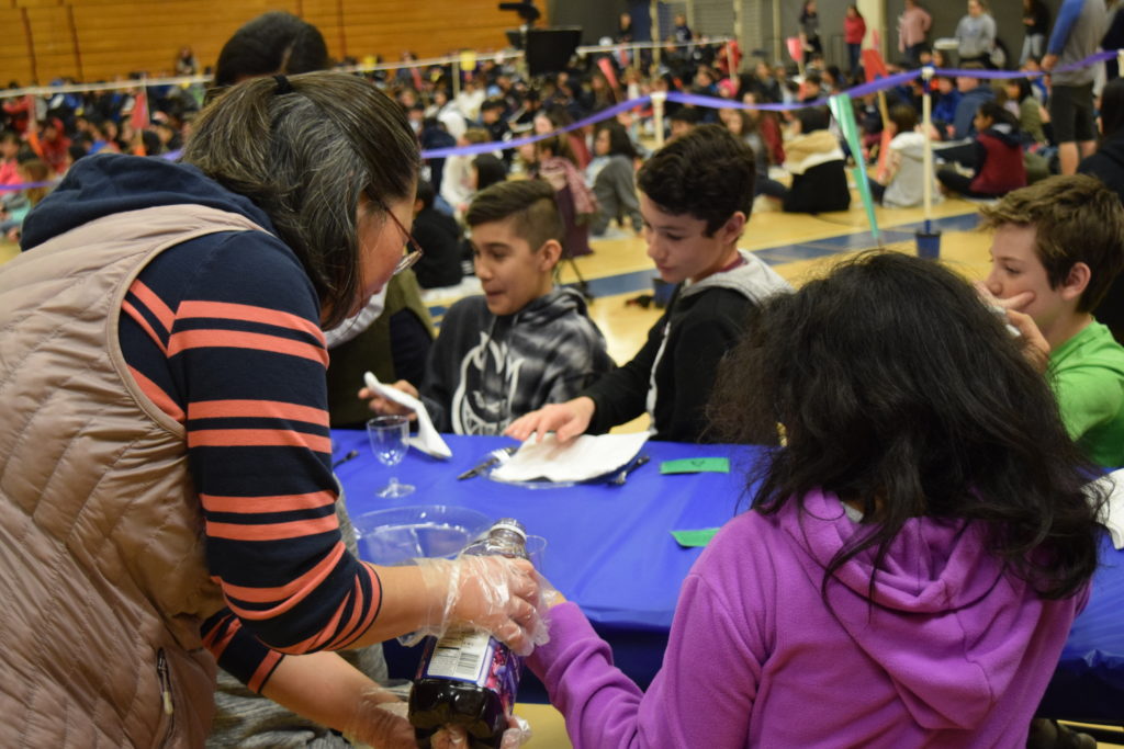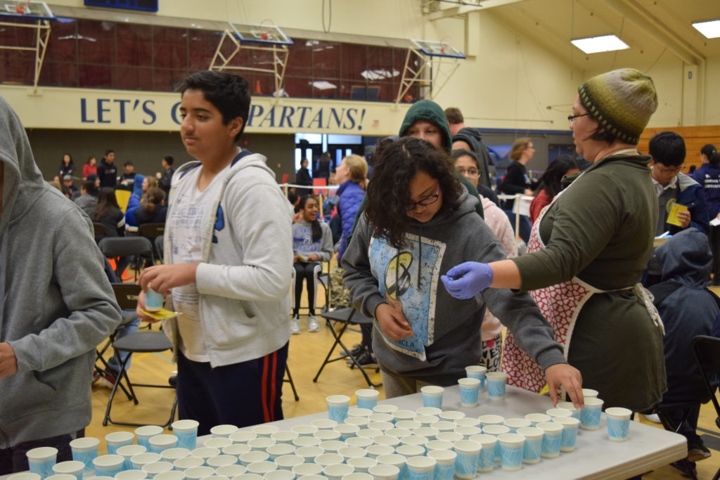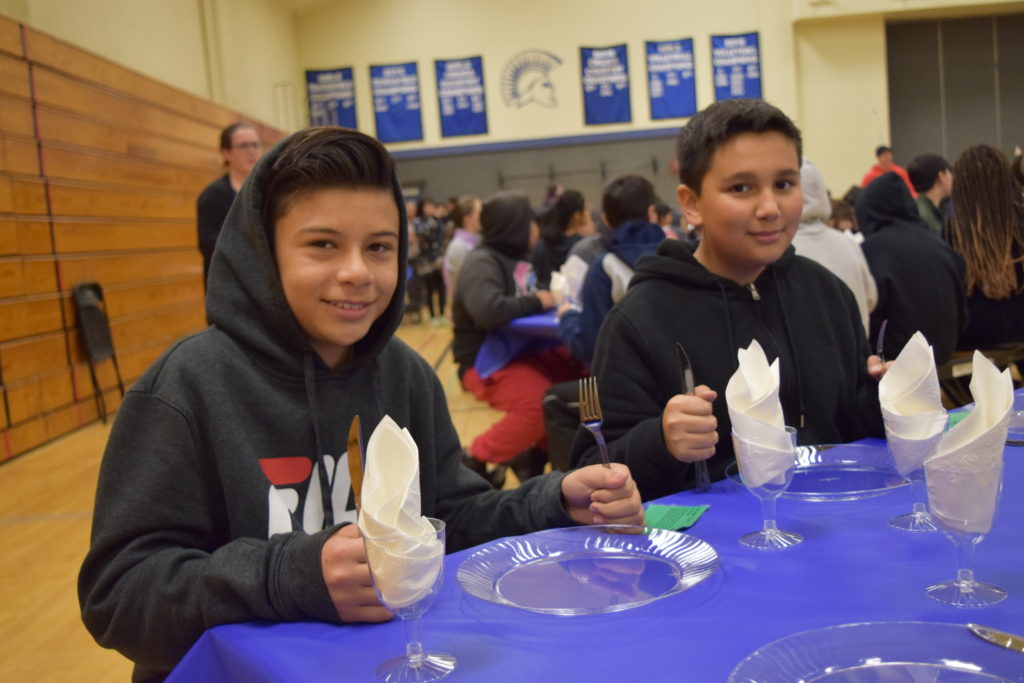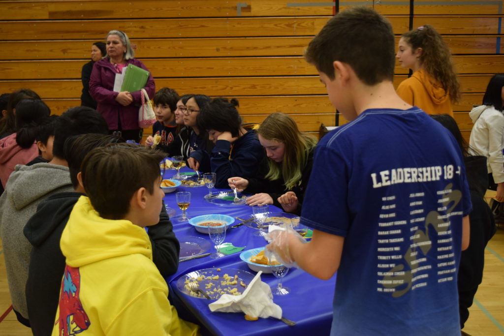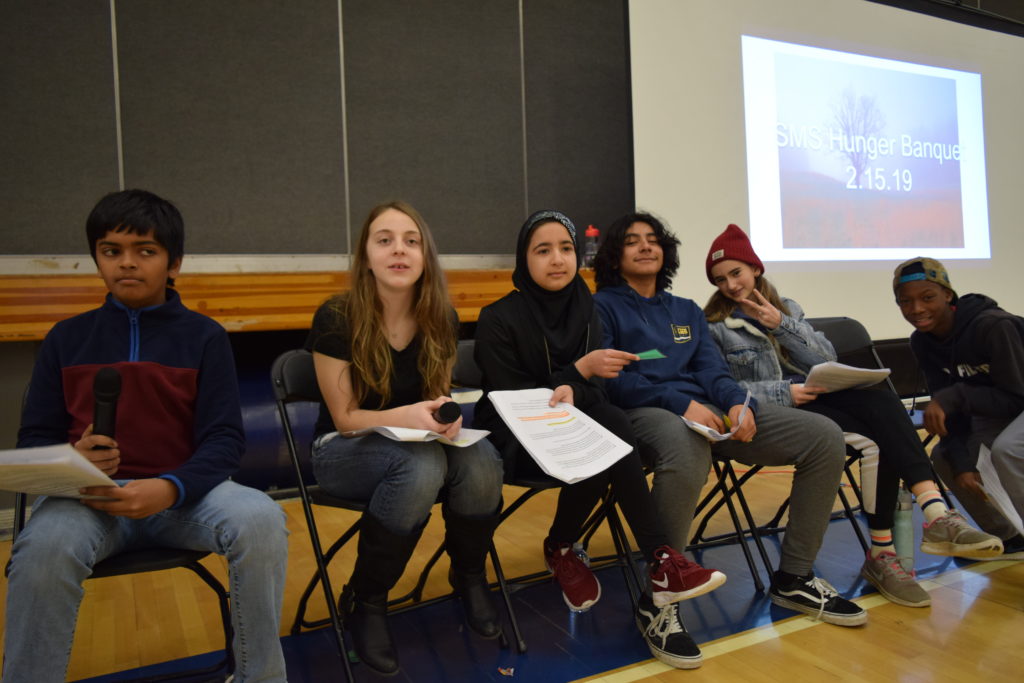 El equipo de 7º grado de Sunnyvale Middle School coordinó el segundo banquete anual del hambre el viernes 15 de febrero de 2019. Todos los estudiantes de 7º grado participaron en una simulación práctica para crear conciencia sobre la pobreza mundial y aprender cómo se distribuyen los alimentos de manera desigual en todo el mundo. En el evento, cada estudiante escogió una tarjeta que representa un personaje que jugaron para el evento. Los personajes eran de ingresos bajos, medios o altos y se servían alimentos representativos de su comunidad. Un grupo de estudiantes maestros de ceremonias se encargó de facilitar el evento. En preparación para el evento, los estudiantes de séptimo grado aprendieron sobre diferentes aspectos de la pobreza global, el hambre en el mundo y la nutrición en cada una de sus clases. Estas lecciones sirvieron como una base útil para los estudiantes a medida que avanzan a través de las actividades del Banquete del Hambre.