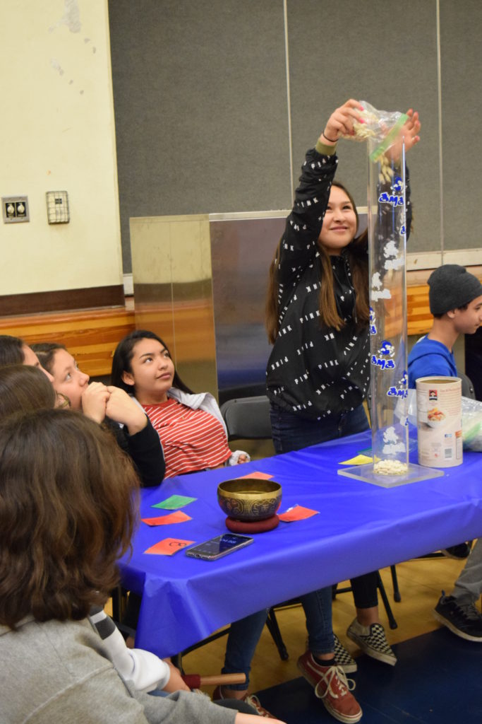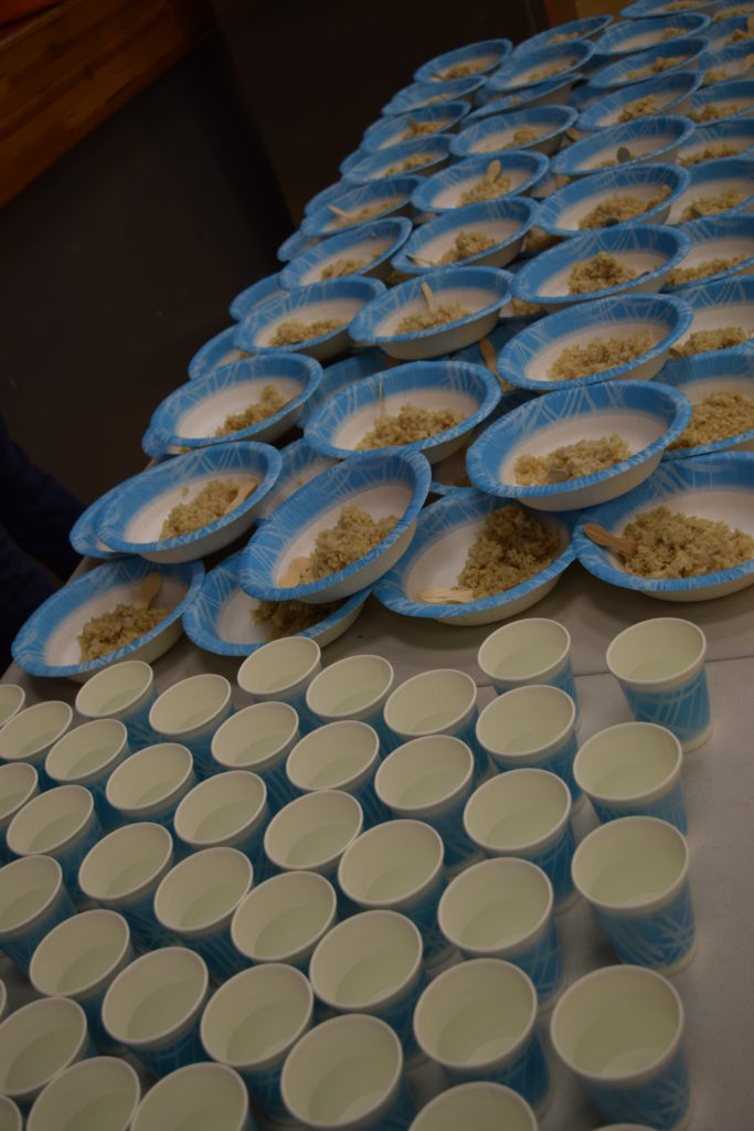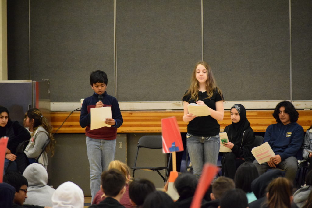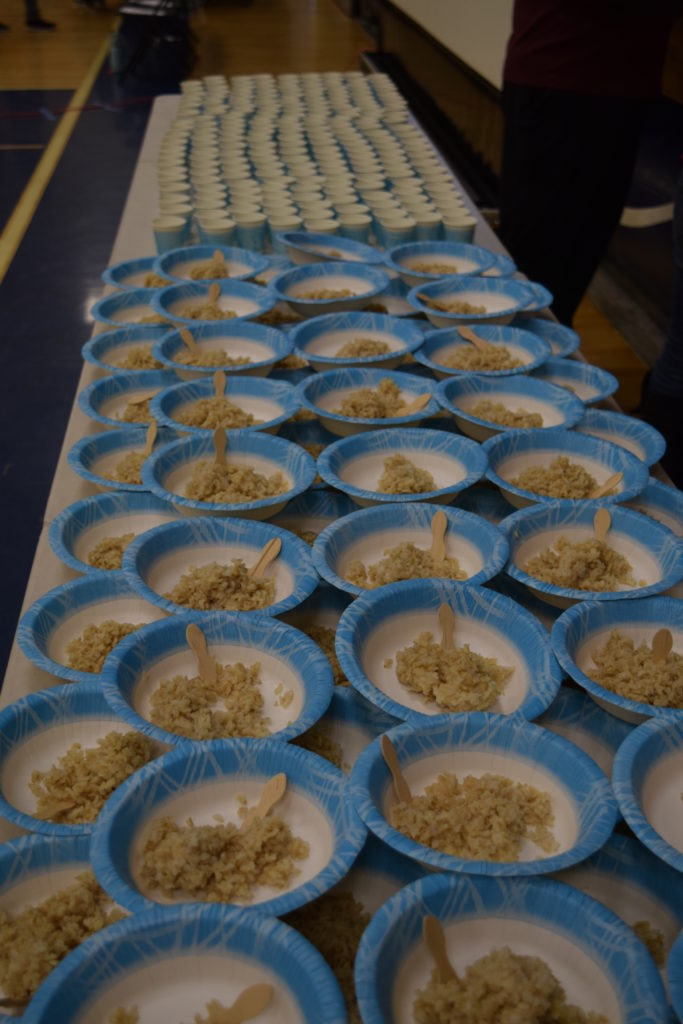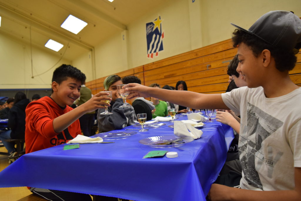 El equipo de 7º grado de Sunnyvale Middle School coordinó el segundo banquete anual del hambre el viernes 15 de febrero de 2019. Todos los estudiantes de 7º grado participaron en una simulación práctica para crear conciencia sobre la pobreza mundial y aprender cómo se distribuyen los alimentos de manera desigual en todo el mundo. En el evento, cada estudiante escogió una tarjeta que representa un personaje que jugaron para el evento. Los personajes eran de ingresos bajos, medios o altos y se servían alimentos representativos de su comunidad. Un grupo de estudiantes maestros de ceremonias se encargó de facilitar el evento. En preparación para el evento, los estudiantes de séptimo grado aprendieron sobre diferentes aspectos de la pobreza global, el hambre en el mundo y la nutrición en cada una de sus clases. Estas lecciones sirvieron como una base útil para los estudiantes a medida que avanzan a través de las actividades del Banquete del Hambre.
